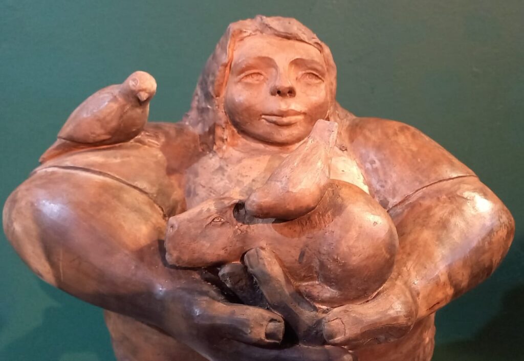 En algunas de ellas podemos ver figuras con reminiscencias a una tiempo pasado, con manos y pies gigantes hechas de tierra y fuego, piezas que fueron a su vez amasadas y construidas por las manos del artista pero a diferencia de este, sus personajes sostienen seres de nuestro entorno natural a modo de plegaria de un mundo que lentamente parece estar yéndose de nuestras manos, hay seres propios del monte y otros que nos acompañaron en nuestras labores desde el principio de lo que llamamos civilizacion, veo en ellas una honradez de la tierra y la poesía que emerge nos conecta con ese yo primitivo y natural, con esa memoria de la humanidad.”