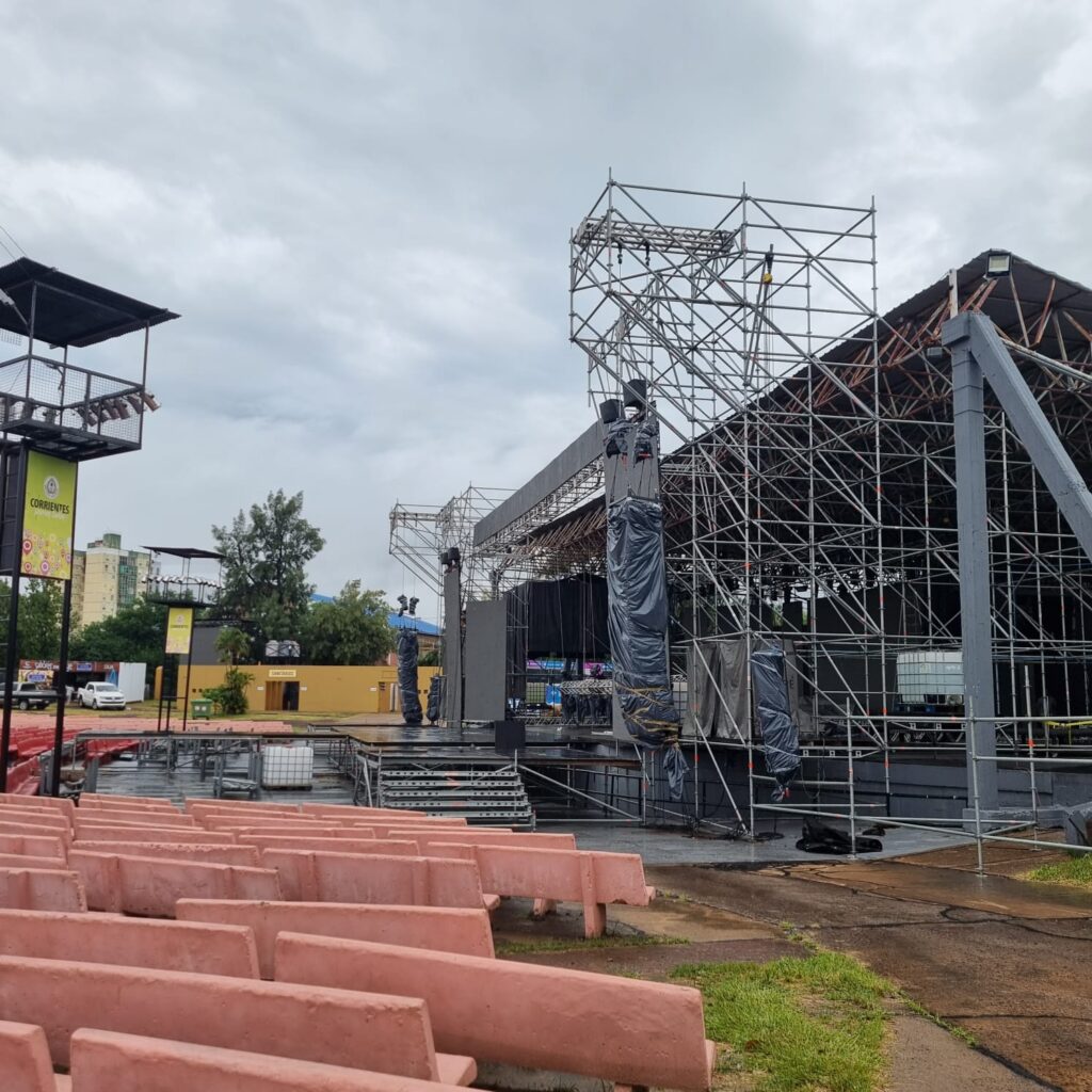 “Durante las horas de lluvia no se pudo trabajar, pero contrarreloj el equipo de trabajo del Instituto de Cultura finalizó el acondicionamiento del anfiteatro y podemos decir que está todo listo para esta primera noche de la Fiesta Grande”, señaló el presidente del Instituto de Cultura de Corrientes, Arq. Gabriel Romero.
