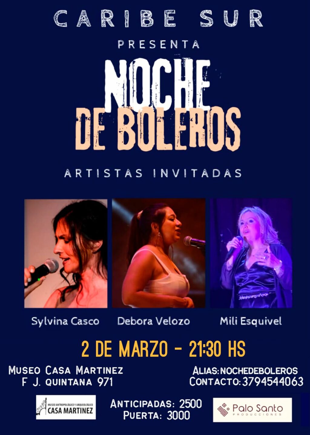 El Instituto de Cultura de Corrientes invita a una gala especial de bolero que se realizará el sábado 2 de marzo, desde las 21,30, en el Museo Arqueológico y Antropológico, ex Casa Martínez, ubicado en Quintana 971. Este espectáculo se realizará en el marco del Mes de la Mujer, con Caribe Sur como protagonista junto a la participación destacada de Sylvina Casco, Mili Esquivel, Débora Velozo y Emma Otero.