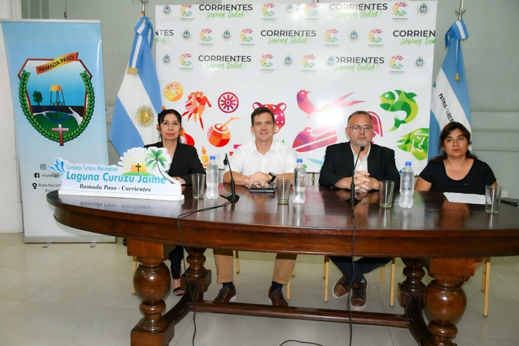 El municipio de Ramada Paso realizó el pasado martes en el Salón Verde de Casa de Gobierno el lanzamiento oficial de la temporada 2025-2026 del Complejo Turístico Recreativo “Laguna Curuzú Jaime”, un destino que año tras año se consolida como un refugio elegido por las familias correntinas y los turistas que buscan naturaleza, tranquilidad y servicios de calidad. El acto estuvo encabezado por el ministro de Turismo, Juan Enrique Braillard Poccard quien destacó la infraestructura y servicios del complejo.