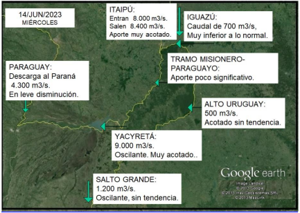 El INA emitió un informe de situación hidrológica y pronóstico de los ríos Paraná y Uruguay 15 junio, 2023